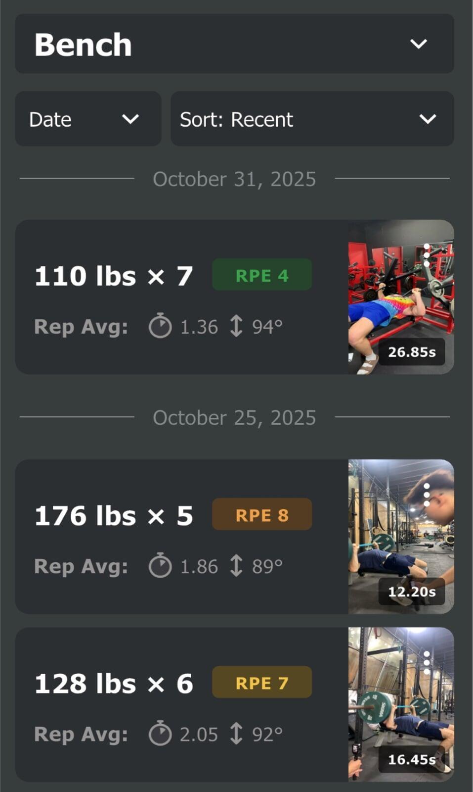 The app’s side-by-side video comparison feature makes it easy to pinpoint technical breakdown and inconsistencies. Isolate phases of the lift in your video to hone on efficiency and the consistency through your entire movement pattern.